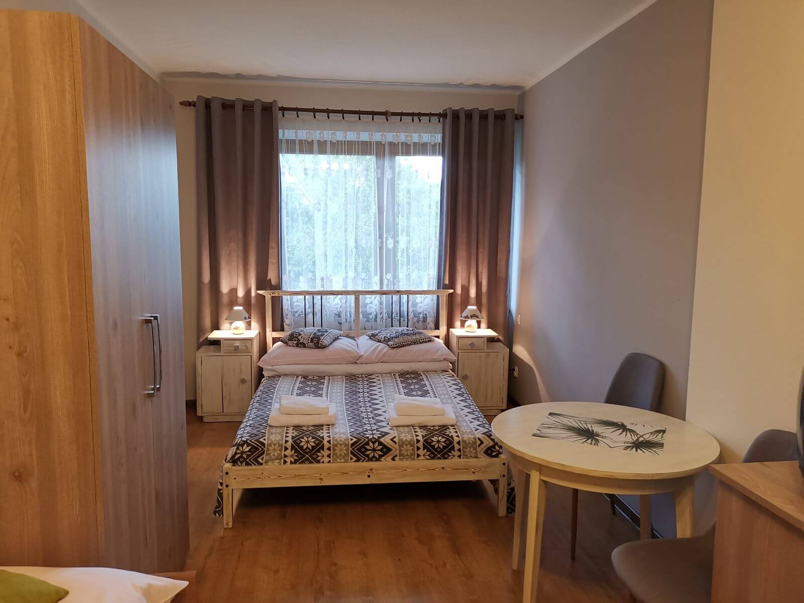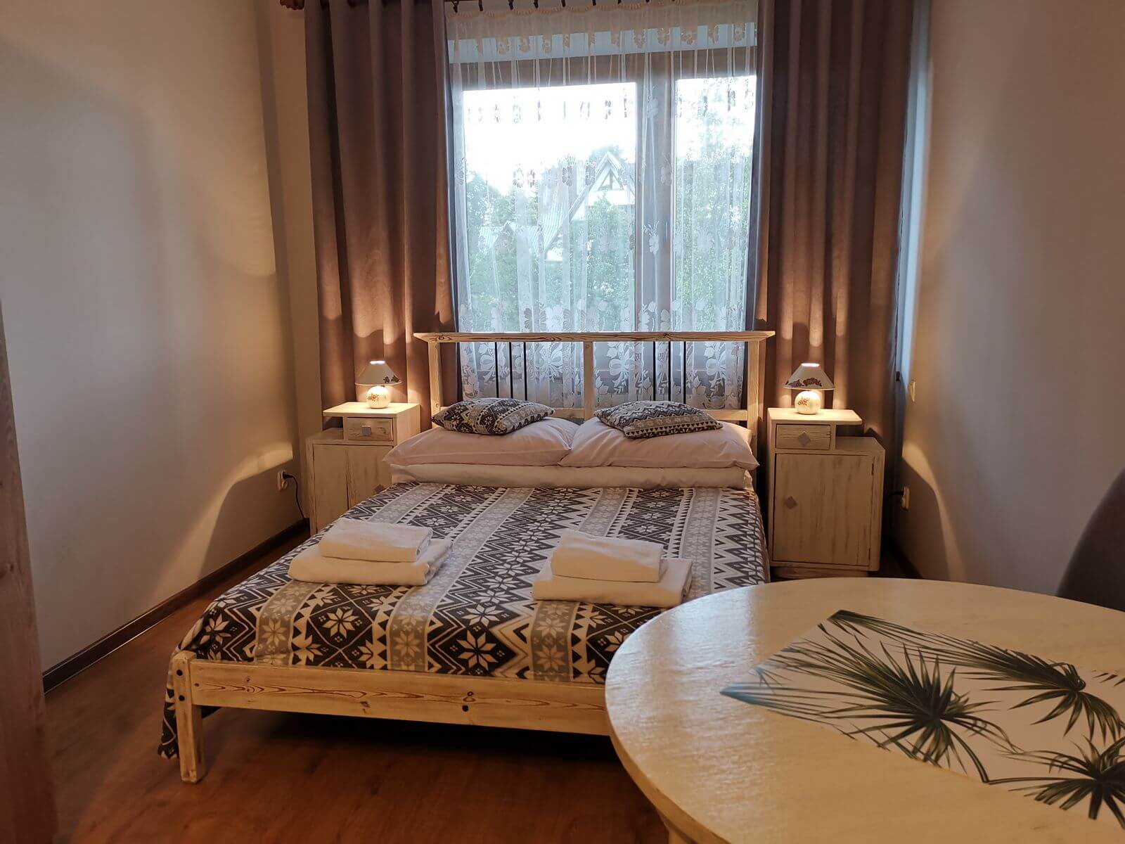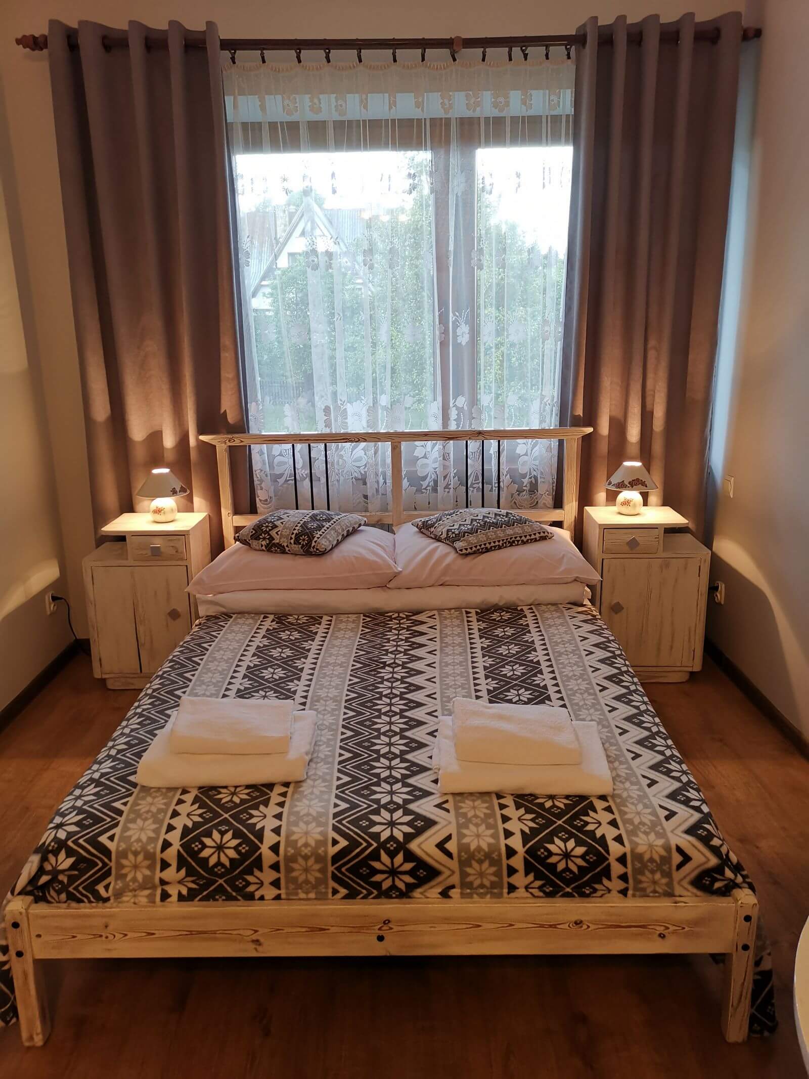 Każdy pokój jest wyposażony w ręcznie robione meble drewniane,ręczniki, TV (smart tv), czajnik (opcjonalnie).